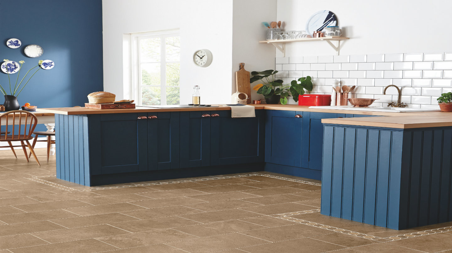Add our new Davyne border to frame the floor around the perimeter of your room and add grout strips between tiles for that authentic stone look. The wide, shallow bevels of our Da Vinci tiles make for an elegant floor that is easy to clean and highly durable.