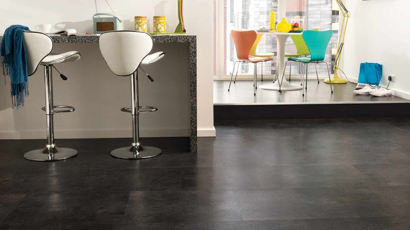 The darkest of our Karndean LooseLay stone tiles, Madison features smokey charcoal tones and looks great with either traditional or more modern decor. With its innovative K–Wave friction grip backing, Karndean LooseLay Madison is ideal for installation over most existing hard floors with little or no need for adhesives, meaning it’s faster and easier to fit and repair.